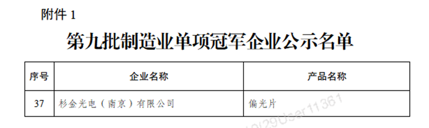 喜訊丨杉金南京榮獲國家級制造業單項冠軍企業認定