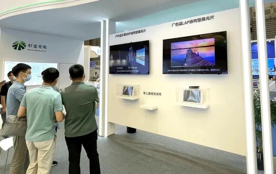 除了戶外顯示用偏光片,杉金光電還帶來了TFT-LCD TV 疊屏用改善彩虹紋偏光片、TFT-LCD TV提升色域LAP偏光片、TFT-LCD TV用超薄偏光片榮獲顯示材料創新銀獎。以及適用于車載屏、手機等場景的各類偏光片產品。