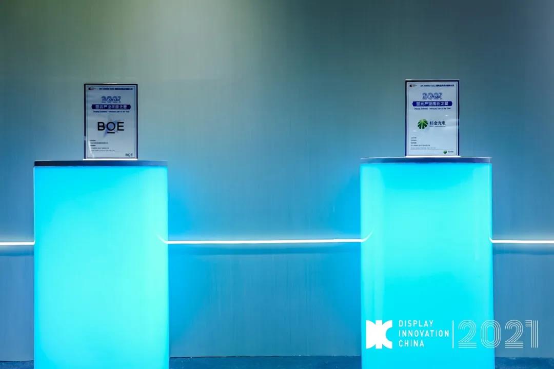 在今年首評選的DIC AWARD獎項中,“DIC AWARD顯示行業之星”重磅獎項分別被顯示器件代表廠商京東方、顯示材料代表廠商杉金光電斬獲。