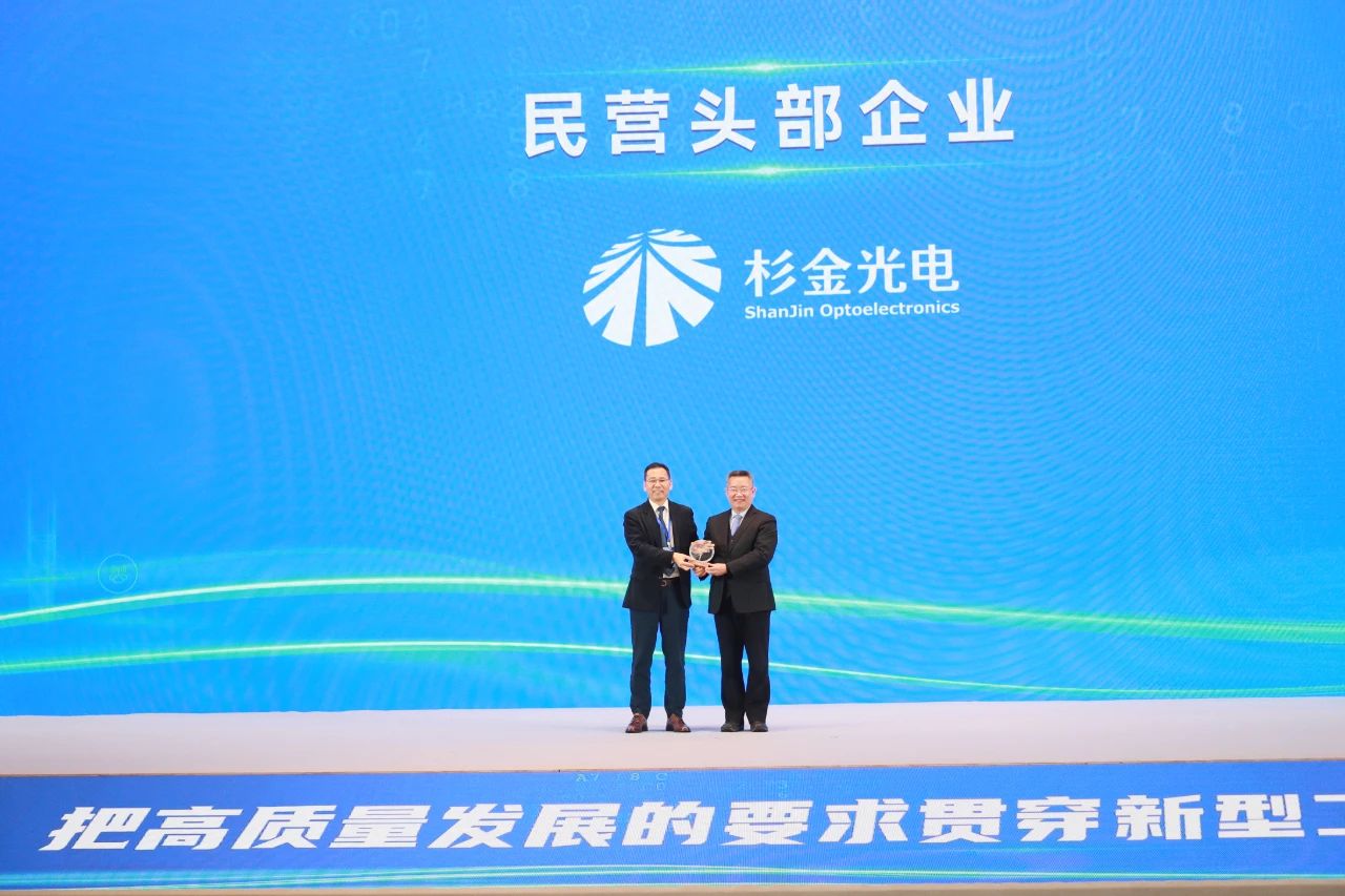 在大會的表彰環節,杉金廣州憑借在偏光片領域的卓越創新能力和制造實力,榮獲“民營頭部企業”稱號。這一殊榮充分展現了杉金光電在顯示材料行業的領先地位和卓越貢獻。