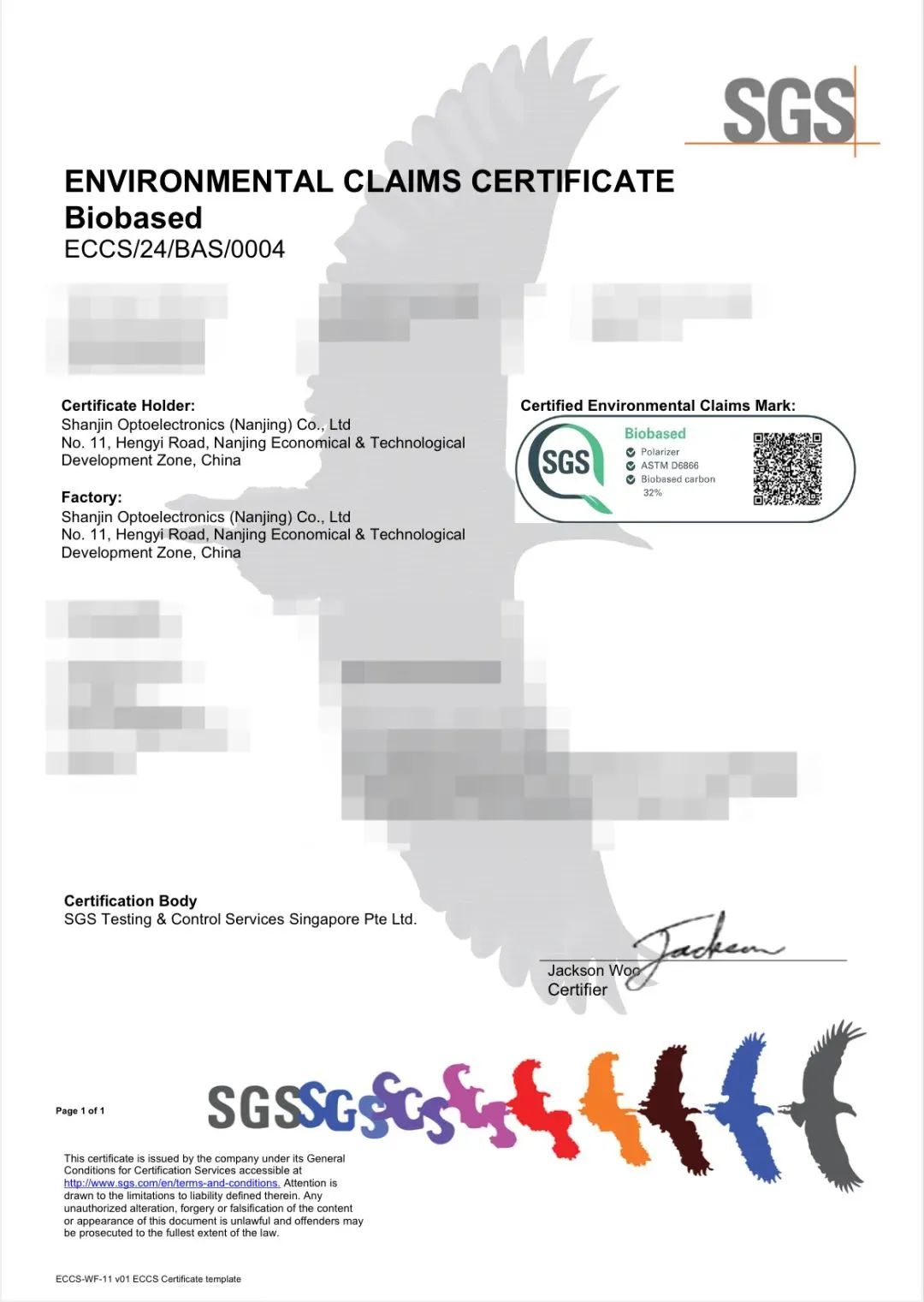 近日,杉金光電南京工廠榮獲了具有全球影響力的“SGS綠色標(biāo)志”-ENVIRONMENTAL CLAIMS CERTIFICATE認(rèn)證證書。這不僅標(biāo)志著杉金光電在綠色制造和環(huán)保方面的卓越努力得到了國(guó)際社會(huì)的廣泛認(rèn)可,更彰顯了公司踐行綠色低碳高質(zhì)量發(fā)展、致力于可持續(xù)發(fā)展的堅(jiān)定決心。