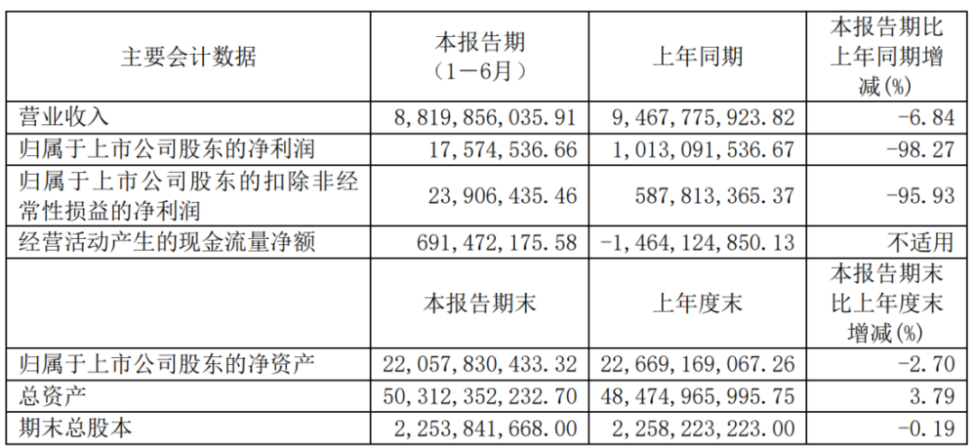 今年上半年,杉杉股份實現(xiàn)營業(yè)收入88.2億元,實現(xiàn)歸母凈利潤1,757.45萬元,同比均呈現(xiàn)負增長。
