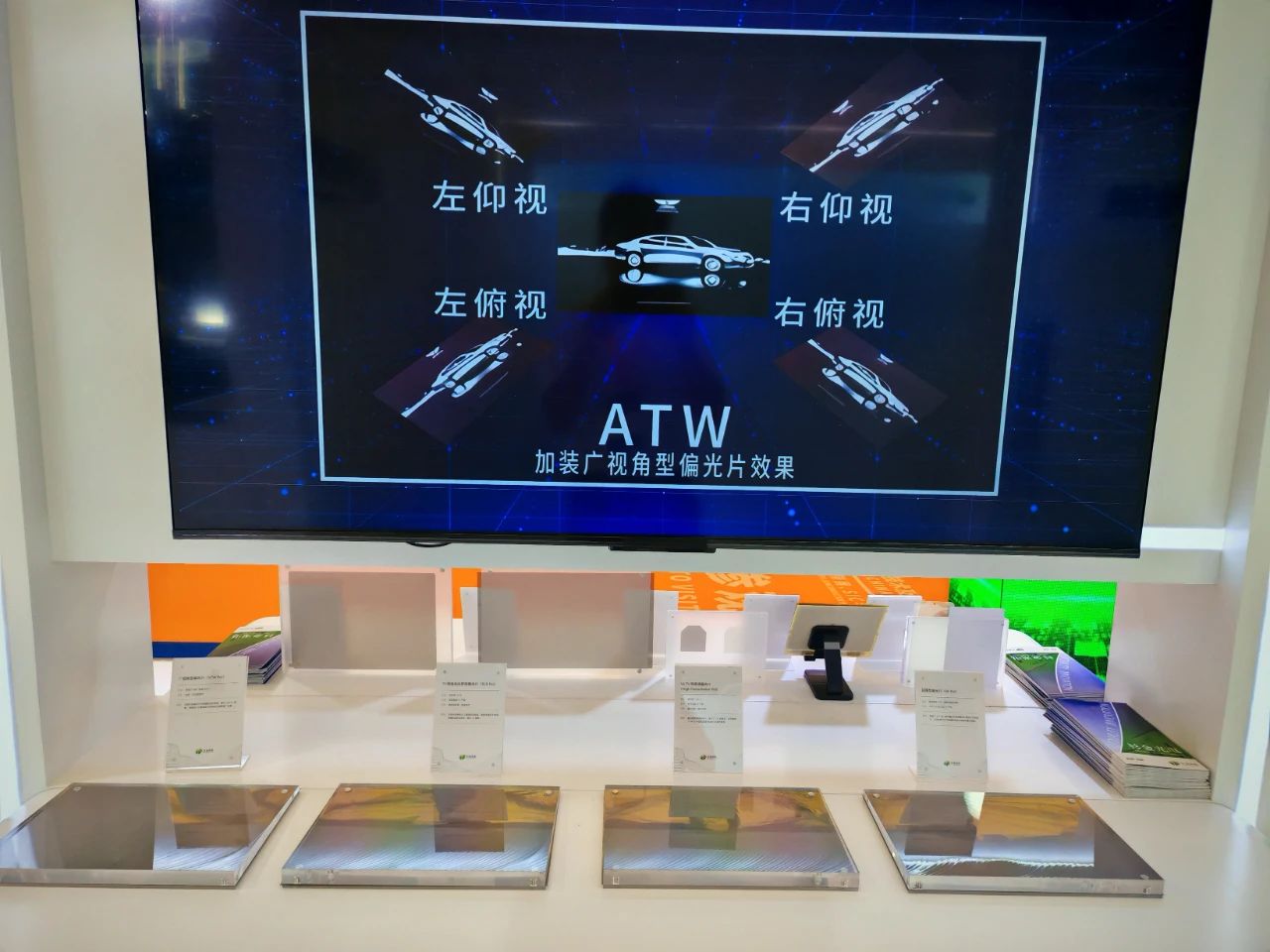 在車載偏光片方面,今年展出的低阻抗、廣視角、高透過及異形加工等多種偏光片產品,滿足了車載顯示的嚴格要求。目前公司收購的車載偏光片業務正在穩定出貨,國內產線已完成部分車企產品認證,今年內將實現量產。在今年展出的產品中,廣視角車載偏光片以超廣視角(170°以上可視角度)、高對比度、高透光率及3H以上表面硬度等特性,通過-40℃~110℃極端溫度測試及1000小時可靠性驗證,適配多尺寸異形切割需求,為智能座艙提供清晰、可靠的視覺解決方案。該產品憑借卓越性能榮膺"顯示材料創新金獎",標志著杉金光電在車載顯示材料領域踏上新的臺階。